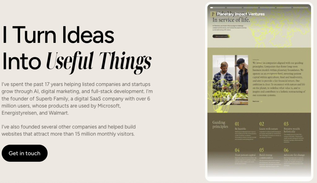 Som founder af Superb Family står jeg bag website software, der bruges af flere millioner mennesker verden over. Virksomheder som Microsoft, Energistyrelsen og Walmart anvender min software, er for mig et bevis på, at arbejdet holder.